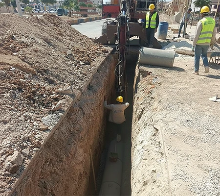 مشروع إعادة تأهيل شبكات الصرف الصحي في عدة محافظات سورية، وشمل ذلك ترميم الأنابيب القديمة بعد فحصها، وتركيب أنابيب خرسانية وبولي إيثيلين، وغرف تفتيش، وأنظمة تصريف جديدة لضمان شبكة صرف صحي موثوقة. نُفذت جميع الأعمال تحت إشراف منظمات غير حكومية.