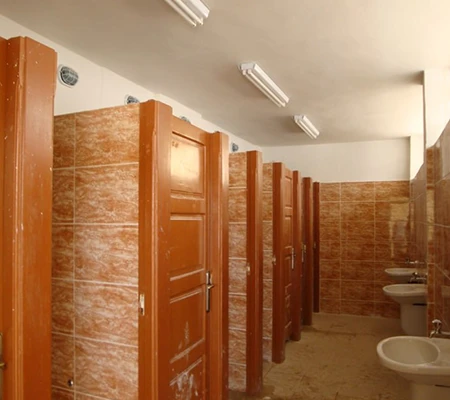 تم تنفيذ المرافق الصحية مع مراعاة كل من الجماليات والوظائف، وتضمنت 44 دورة مياه، بما في ذلك وحدات مصممة خصيصًا للأشخاص ذوي الإعاقة.