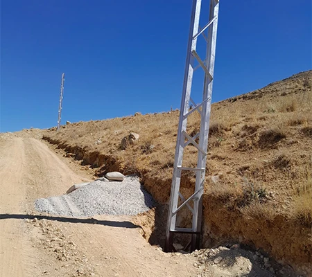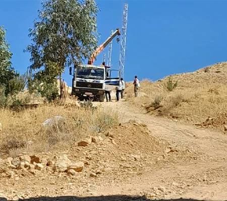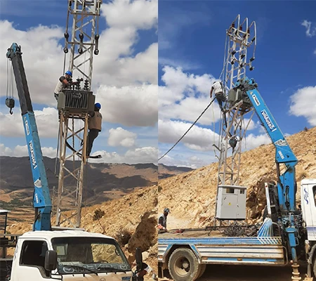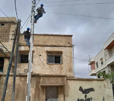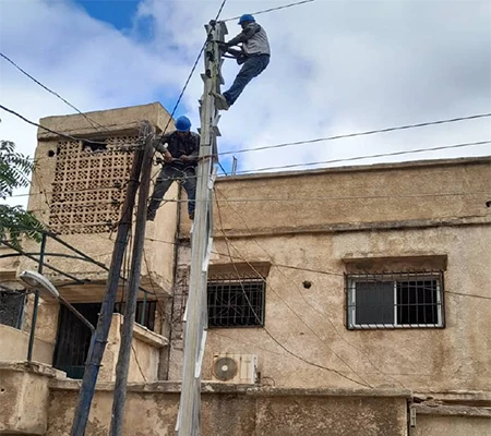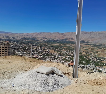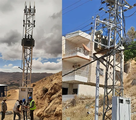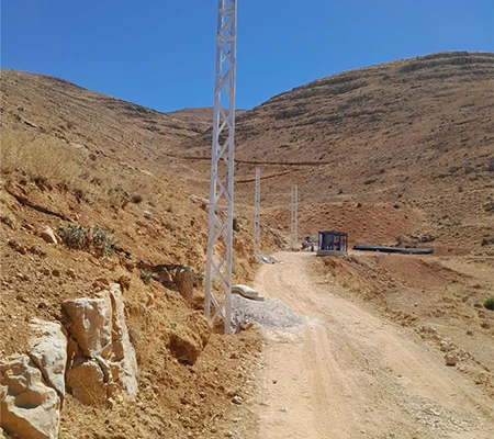 As part of this project, steel power towers were installed to replace the old wooden poles, and the electrical network in the town of Madaya was reorganized. Several kilometers of medium voltage cables were extended and connected to a newly equipped transformer station, which was installed with a new power transformer to operate the Wadi Al-Maaysra well on a load-shedding-exempt power line.