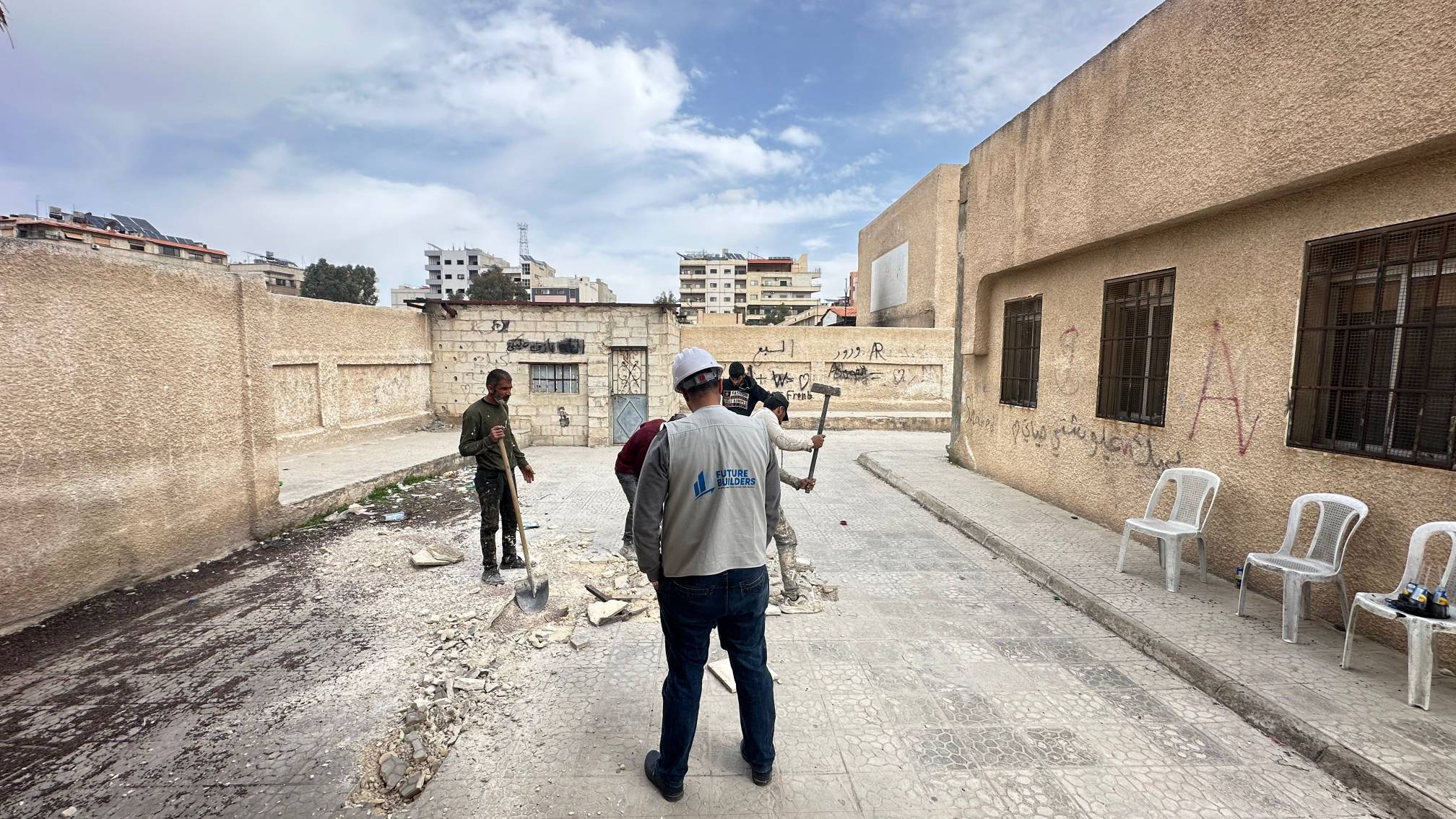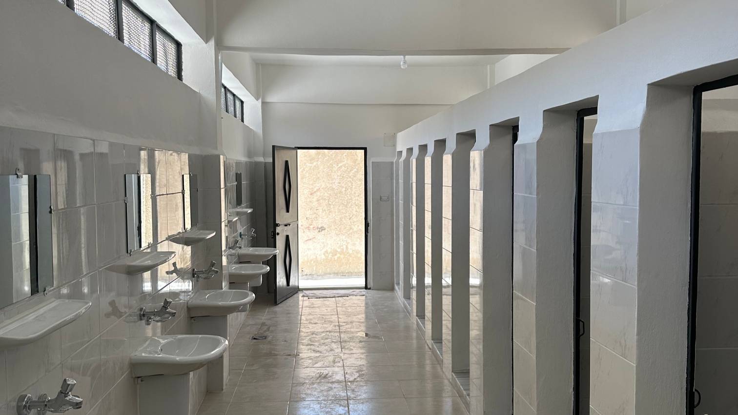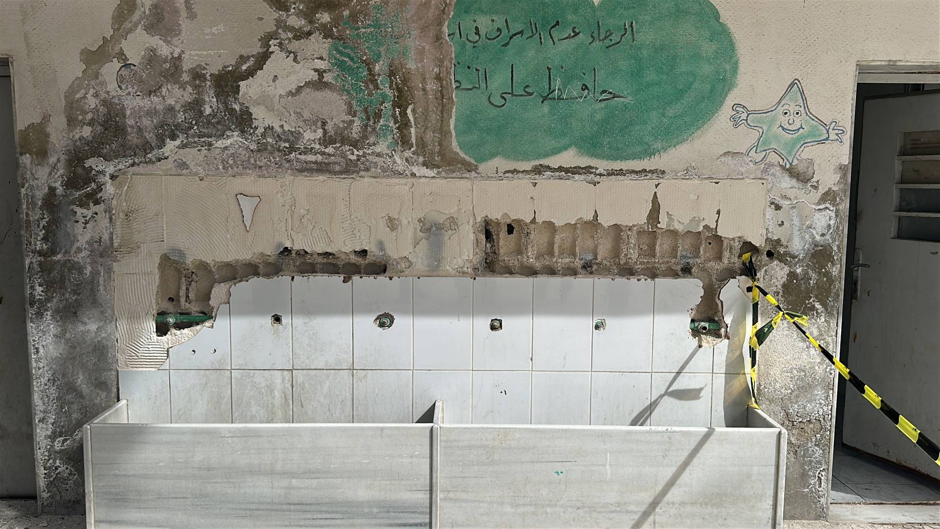 • إعادة تأهيل شاملة للمراحيض ومحطات غسل اليدين ومبردات المياه بعد هدم التجهيزات المتضررة.