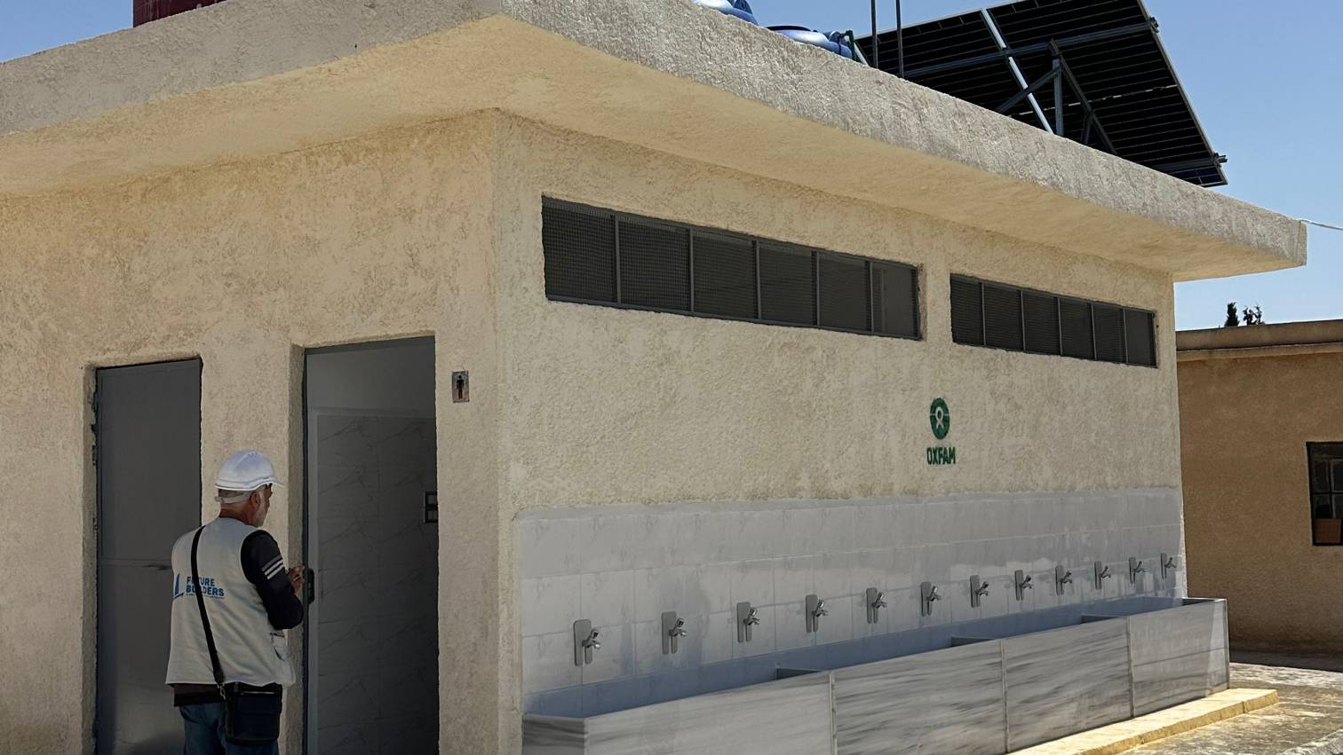 • أنظمة الطاقة الشمسية (الألواح والبطاريات والمضخات) + ملحقات الإضاءة للحمامات + خزانات مياه جديدة.