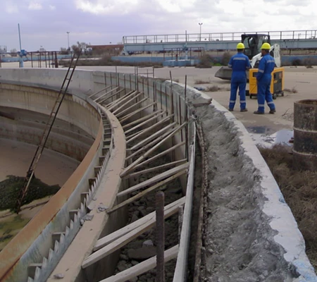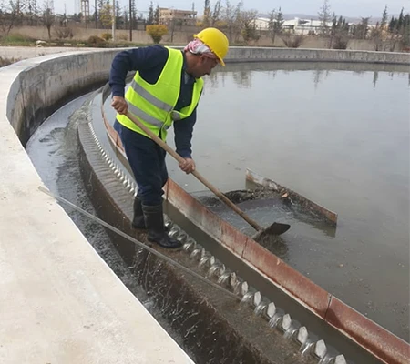 أجزاء إعادة تأهيل مسار معالجة مياه الصرف الصحي في محطة المعالجة في عدرا